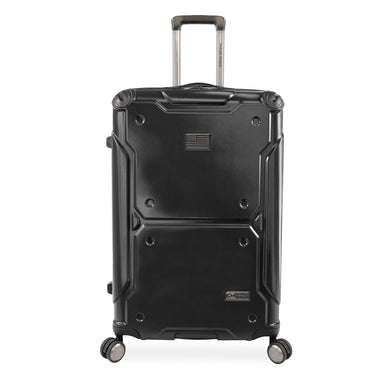 Metal American Flag Emblem Constructed of durable super ABS hardshell technology 8-wheel 360-degree spinner wheels Lightweight construction Push ...